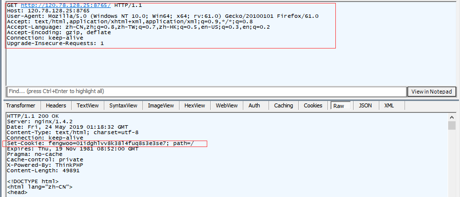 http://120.78.128.25:8765网站,我们使用Fiddler抓取请求此网站首页的请求报文和响应报文