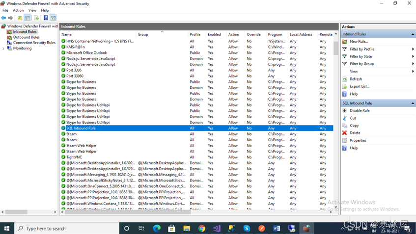 现在您可以看到我们的新规则列在入站规则列表中。