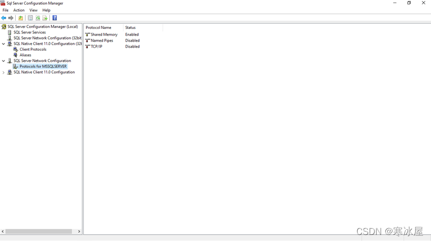 在详细信息窗格(右侧面板)中,右键单击命名管道协议,然后单击启用以启用该特定 SQL 实例的命名管道。