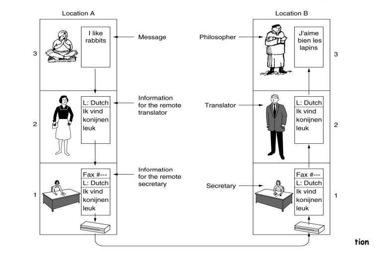 - 协议:对等层实体通信过程中遵守的规则的集合