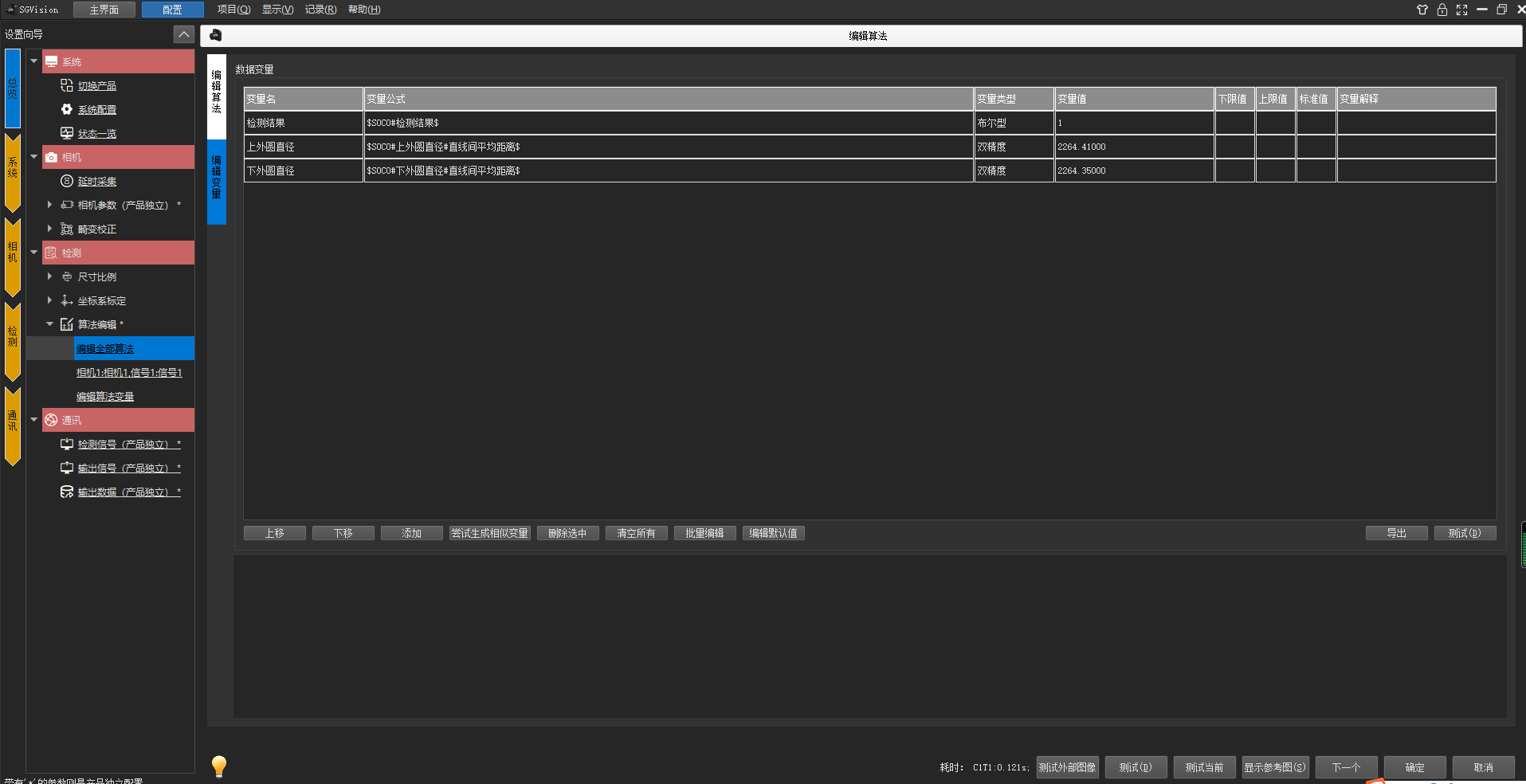 在我们设置好算法之后,想要输出数据,首先要把需要输出.的数据在【编辑变量里面】添加为变量。