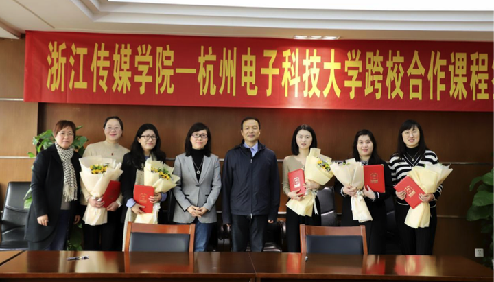 浙江传媒学院副校长李文冰、教务处处长黄寒冰、杭州电子科技大学教务处处长罗志增以及两校教务处相关领导、两校首期参与校际授课的7位教师出席了签约仪式。