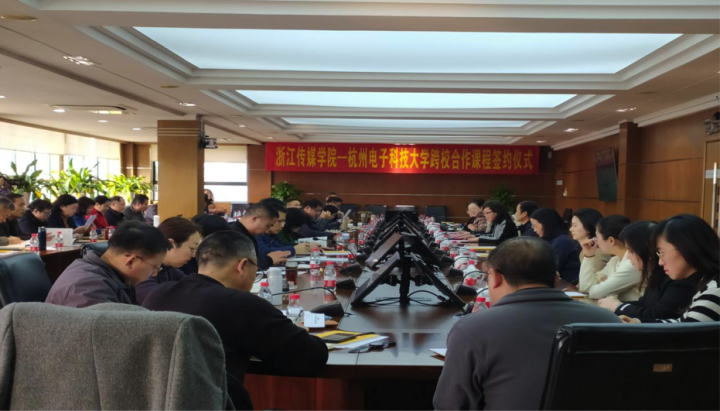 3月1日,浙江传媒学院与杭州电子科技大学签署了跨校合作课程协议,双方共建共享优质通识课程,互派教师到对方学校授课,积极推进校际间优质教学资源互动共享。