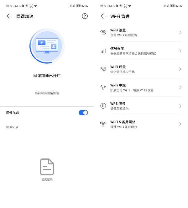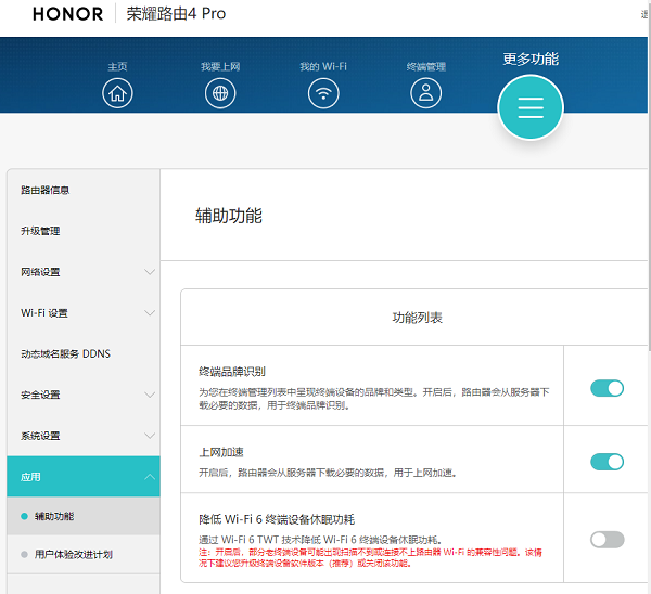 网课加速这个功能很不错,对于家中有孩子的用户,这个功能就比较友好,因为很多网课资源有时候速度是挺慢的。另外就是中继设置,以及WPS服务之类的可以让一些智能设备快速联网,另外就是WiFi5的一些兼容设置。