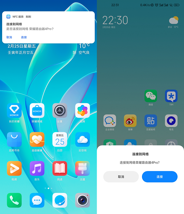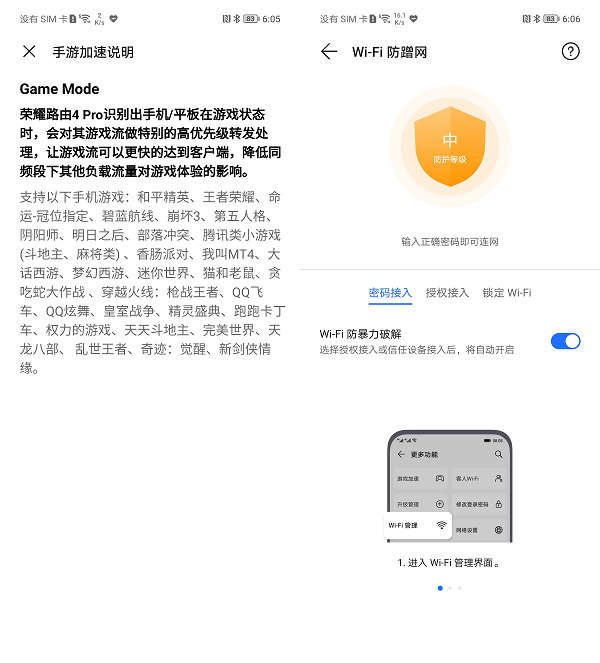 首先就是它的连接方式,荣耀路由4 Pro支持NFC一碰联网,不仅是荣耀自家带NFC的手机支持,我试了一下市面上绝大多数的安卓手机,基本上只要带NFC的手机都支持一键碰连,不得不说荣耀这波很有格局了,当然苹果的还是只能老老实实输入密码,毕竟NFC不开放。