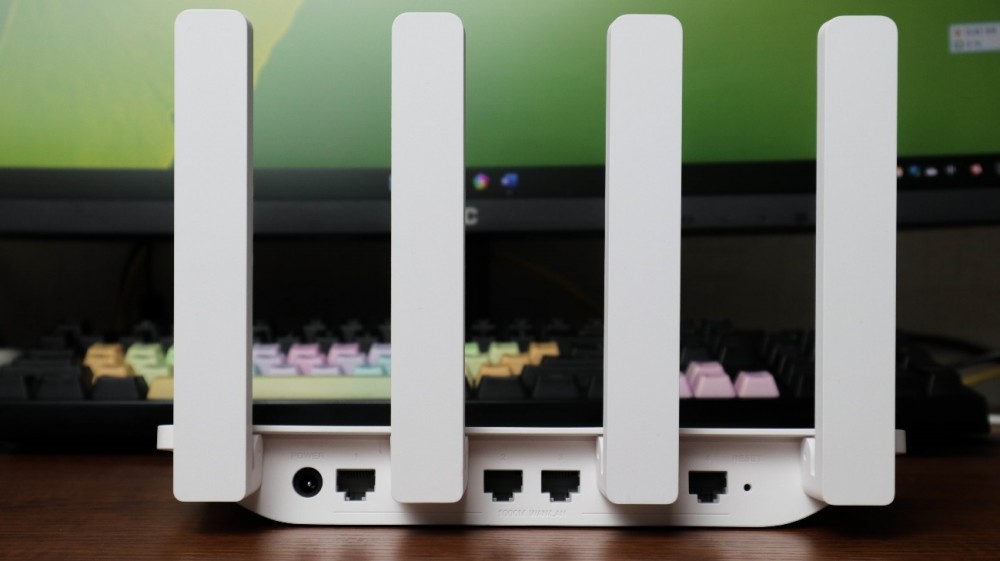 正面路由器拥有一颗指示灯通过切换颜色以表明不同的状态,背面拥有四个全千兆的Wan/Lan自适应接口,支持盲插,即使对组网一窍不通也不用担心插错,附带一个复位孔以及12V2A的电源接口。