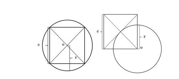 对于要监视的目标区域,必须做到全覆盖。首先需要对目标区域进行网格化处理,使我们可以通过访问网格节点的方式实现对目标区域的覆盖,这里我们采用正方形的网格进行网格化。网格化处理时需要让无人机能够无缝隙的覆盖目标区域的各个网格,假设无人机的探测范围在地面的投影是以自身为圆心、以r为半径的圆形区域,则网格的大小需要根据无人机的探测半径r来决定。因此,我们可以将覆盖问题转化为网格扫描问题,任务区域就可以使用网格的集合来表示,设为A。网格要小于这个投影区域的大小,但又要尽可能的大。如图1所示,则网格的边长 最大可以为: