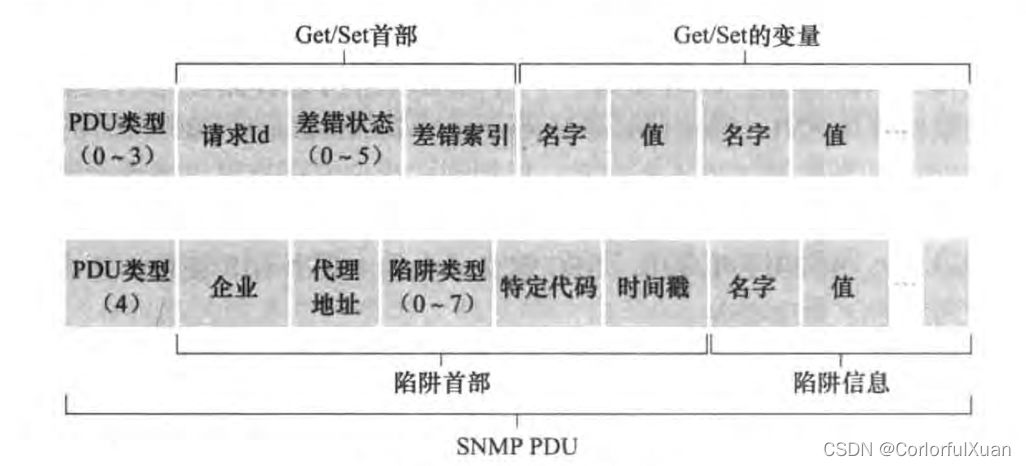 - SNMP PDU通常是作为UDP数据报的载荷进行传输的。