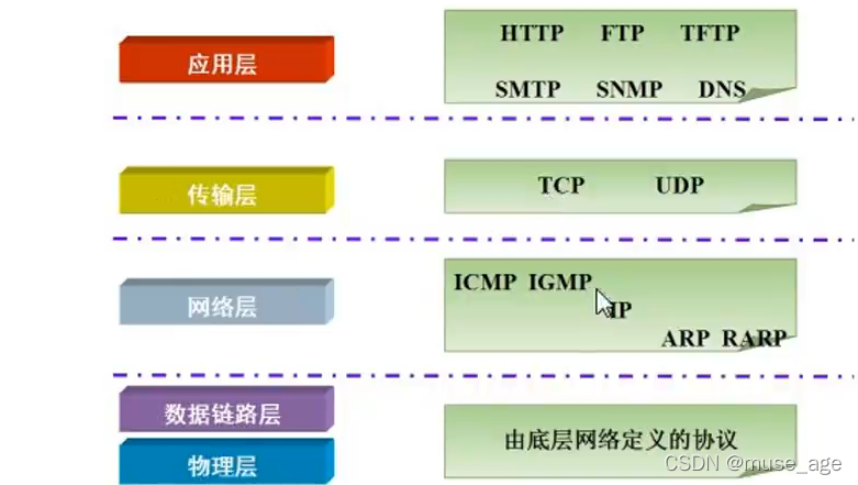 它的内部包含一系列用于处理数据通信的协议,并采用了4层的分层模型,每一层都呼叫它的下一层提供的协议来完成自己的需求。
