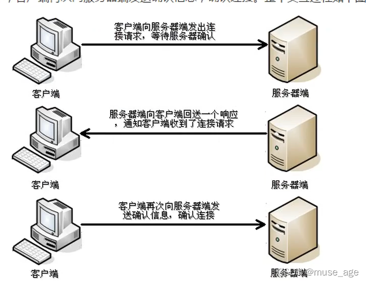 在TCP连接中必须要明确客户端与服务器端,由客户端向服务器端发送连接请求,每次连接的创建都需要经过三次握手