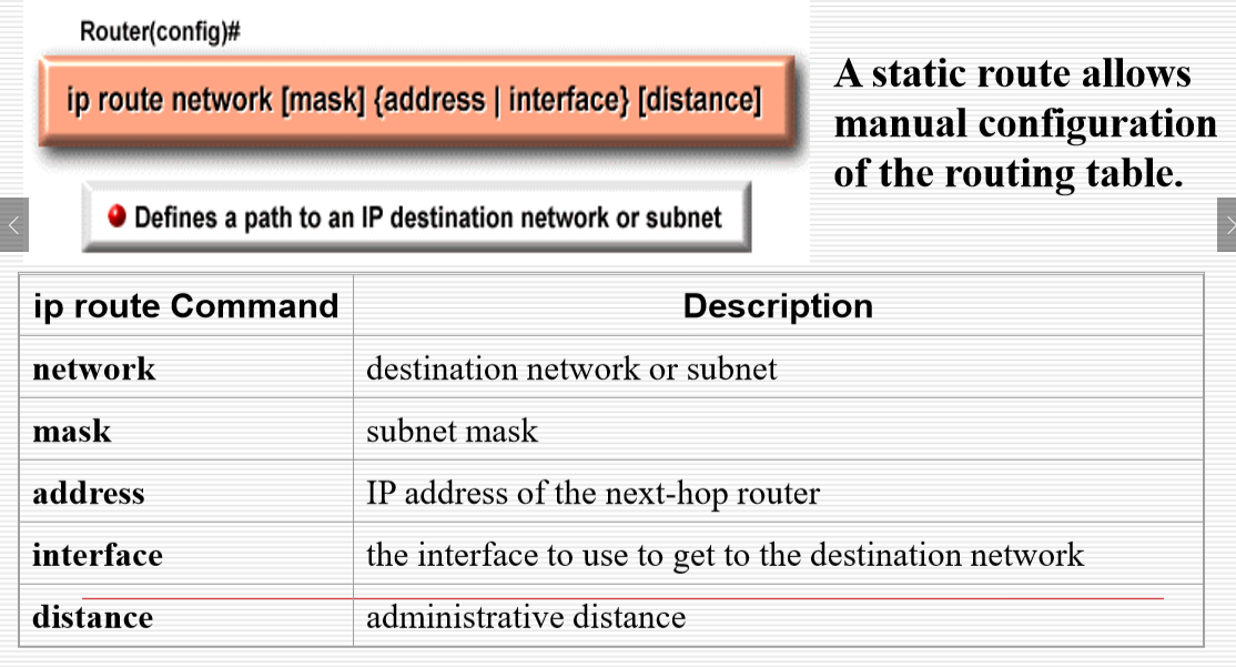- 因此静态路由的管理距离通常很短(默认值为1)