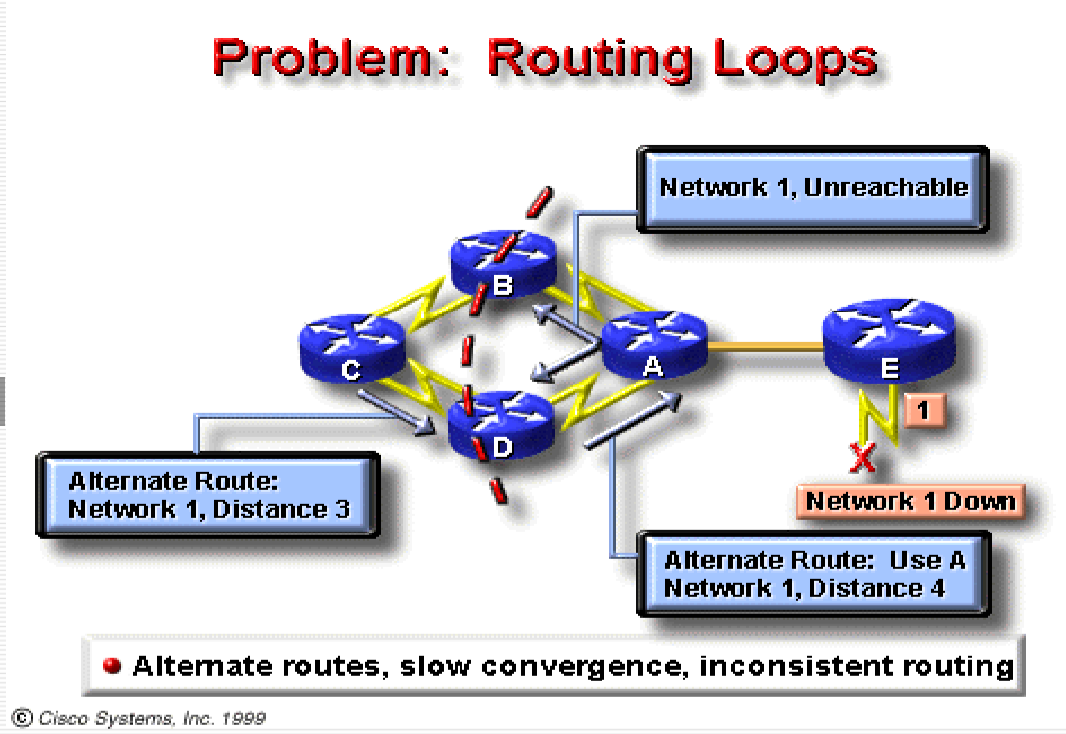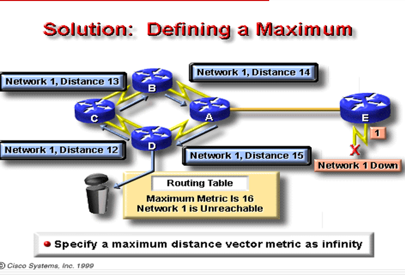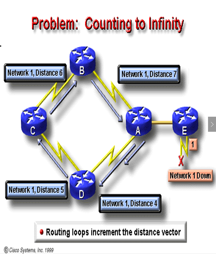 - 如果B和D接收到一个到达目的网段1的更好的路径,A是会接收的