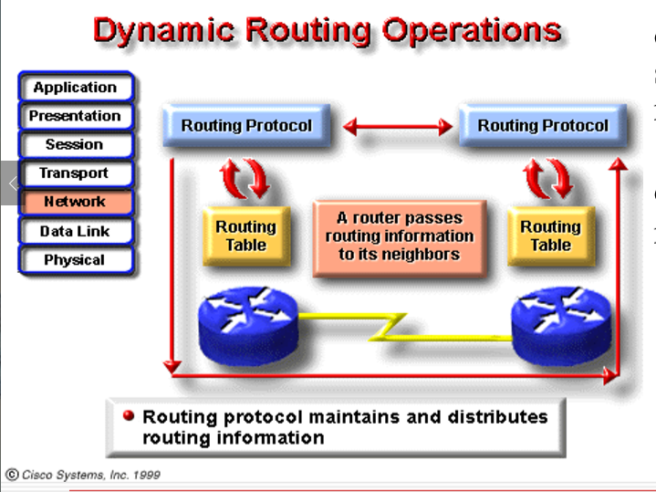 - 动态路由依赖于路由协议在路由器之间共享知识。