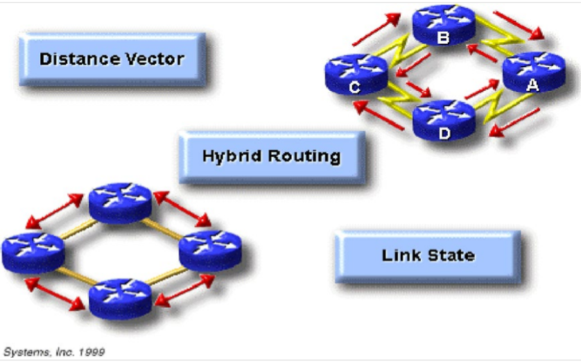 - Cisco’s EIGRP(Enhanced Interior Gateway Routing Protocol). 基于负载和带宽评判,定时交换路由表