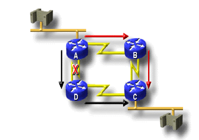 - 动态路由协议还可以重定向网络中不同路径之间的流量(或负载分担(loadshare))