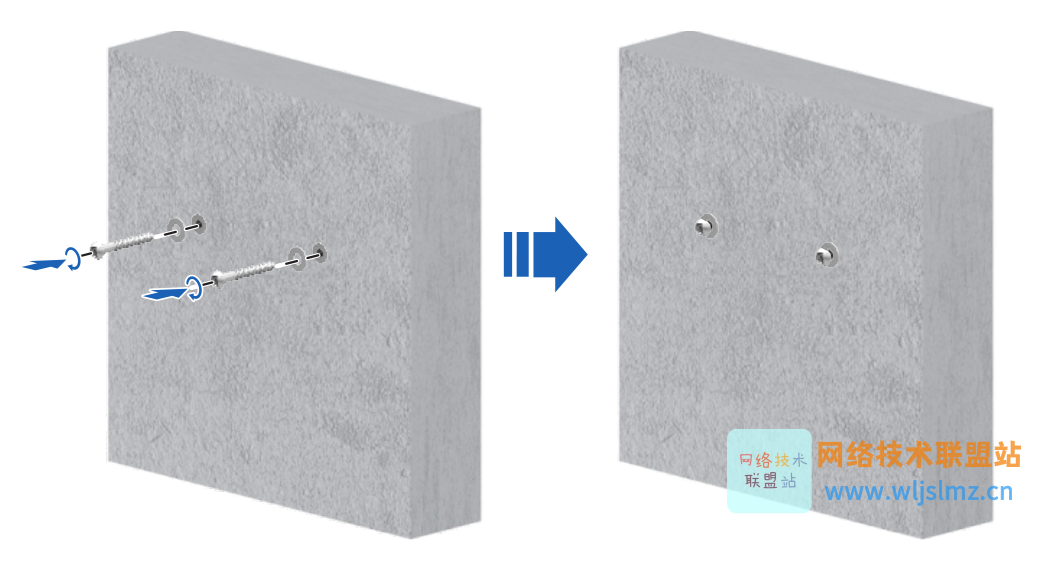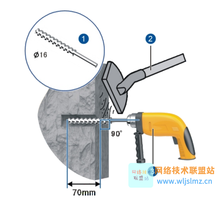 - 在垂直墙面上2个壁挂螺钉的孔位连线呈水平状态,且间距为160 mm,打孔深度不小于22 mm。