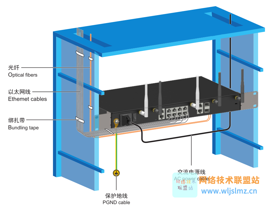 - 线缆布放完成后应及时粘贴线缆标签(图中省略)以便标示,方便维护。