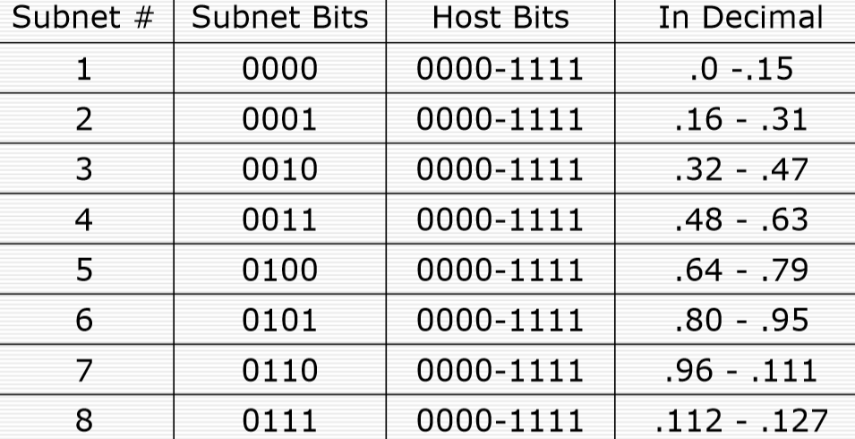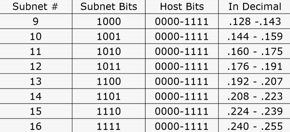 - 因此,需要4位来表示主机,对于/28的扩展网络前缀需要4位。