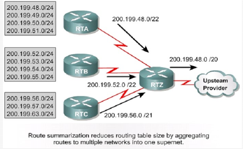 - 使用无类域间路由(CIDR,Classless InterDomain Routing)和VLSM不仅可以防止地址浪费,而且还可以促进路由聚合或汇总。