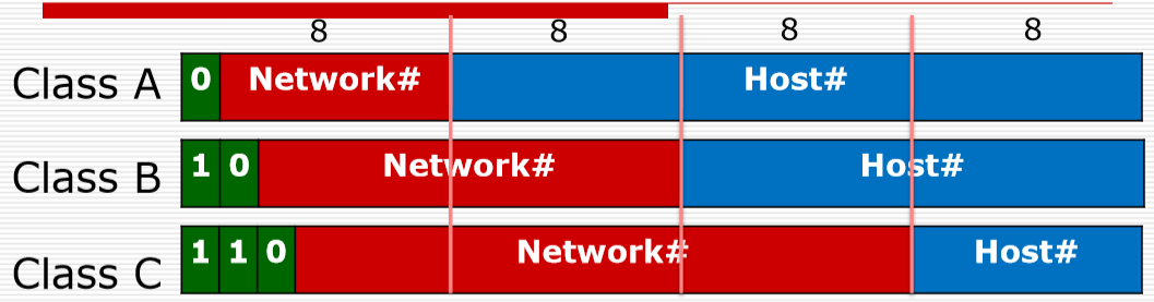 - 可以由前三个八位位组(octets)中的一个,两个或三个来标识