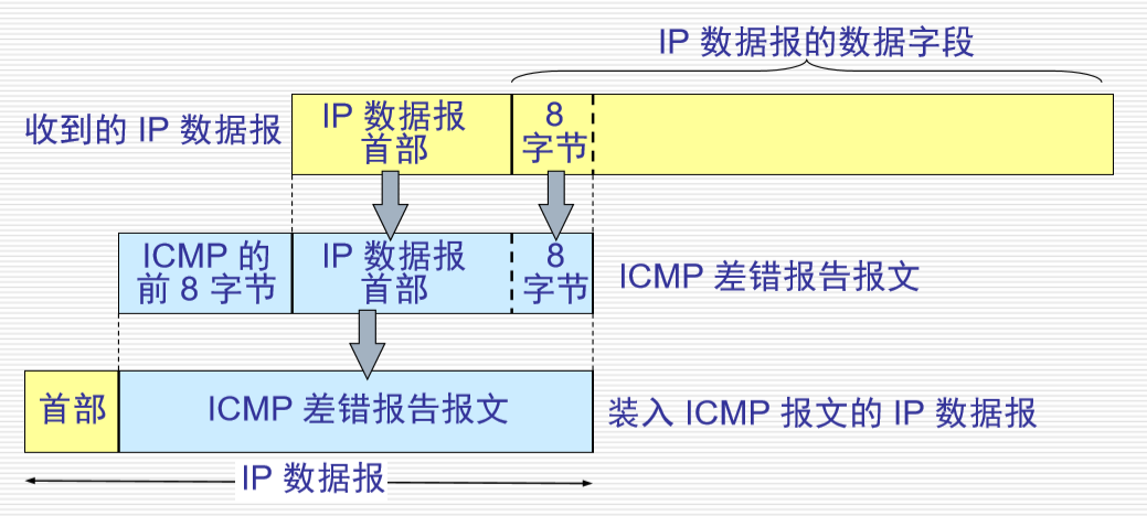 - 一般会把原始的IP数据报文的数据报首部 + 8字节(数据的,可能会包含端口信息)作为ICMP的数据部分