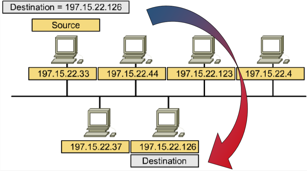 - 使用分层寻址方案(与MAC寻址相反,后者平坦)