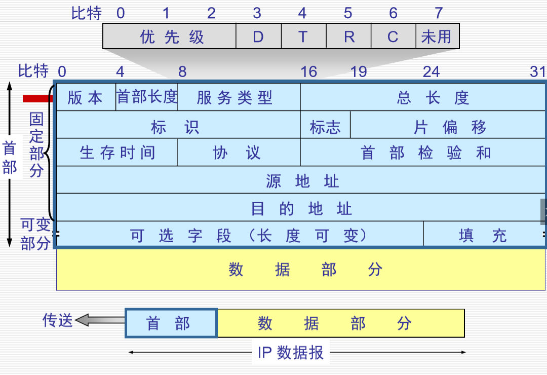 协议(8 bit)字段指出此数据报携带的数据使用何种协议以便目的主机的IP层将数据部分上交给哪个处理过程