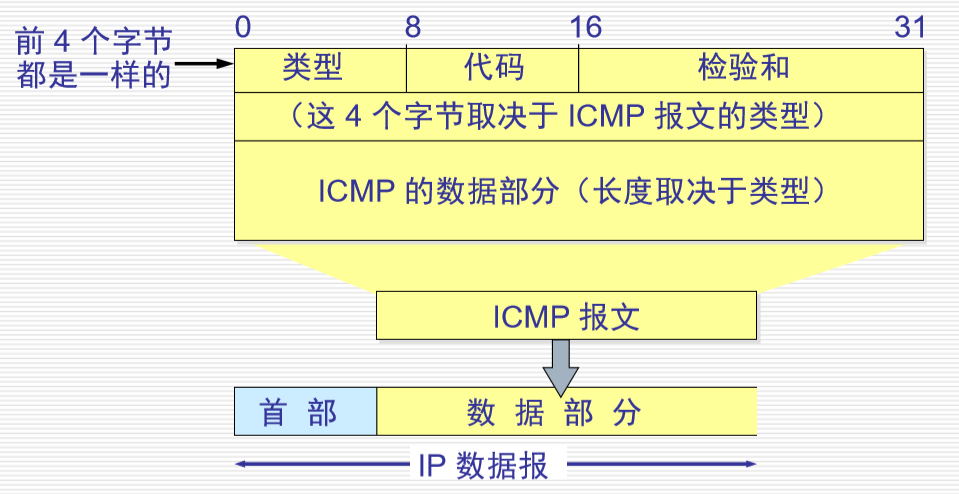 - ICMP 报文作为IP层数据报的数据,加上数据报的首部,组成 IP 数据报发送出去