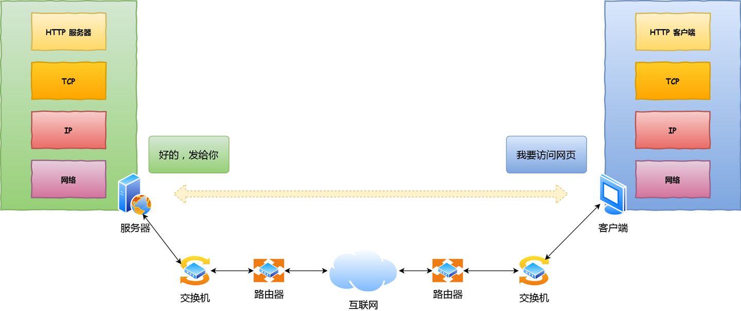 服务器的 HTTP 进程看到,原来这个请求是要访问一个页面,于是就把这个网页封装在 HTTP 响应报文里。