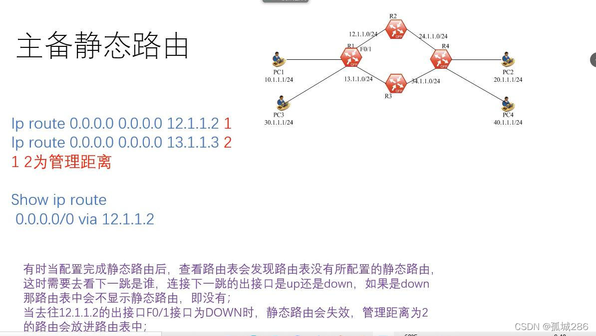 静态路由器不那么聪明,他不知道下面的跳跃界面是下方的。