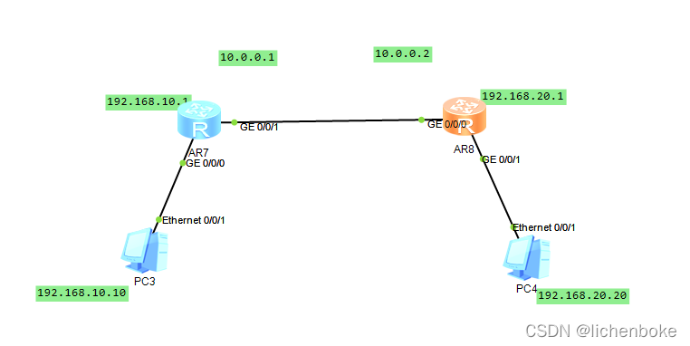 四. 如图表直接链接部分所示,不公开、核实数据包的IP地址,并通过E0传送给主机B。