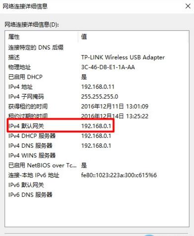 但我们可以通过查看电脑、手机中的IP地址信息,来确定该路由器的LAN口IP地址信息,如下图所示。