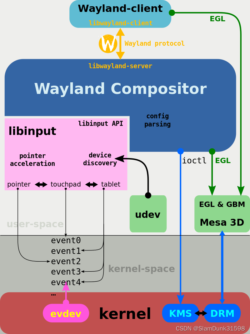 Weston 使用 limpinput 处理输入设备( 键盘、 鼠标、 触摸等) 。