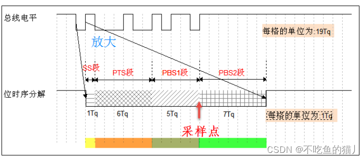 波特率只是简单地规定每个数据位置的时间长度,而数据同步则涉及阶段特性,这在SS节、PTS节、PBS1节和PBS2节中是要求的。