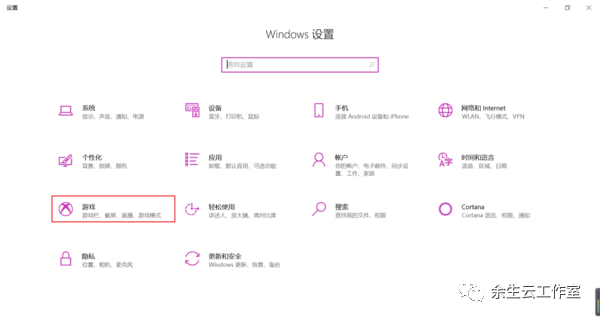 第二步, 计算机将弹出 Windows 10 系统的设置界面, 我们将在那里定位和选择游戏选择 。