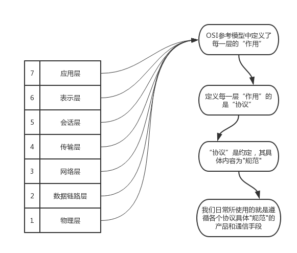 在分层模块上, TCP/IP 和 OSI 之间有明确的区别。 OSI 参考模型侧重于“ 通信协议需要什么功能 ”, 而 TCP/IP 则侧重于“ 执行计算机协议应该建立什么程序 ” 。