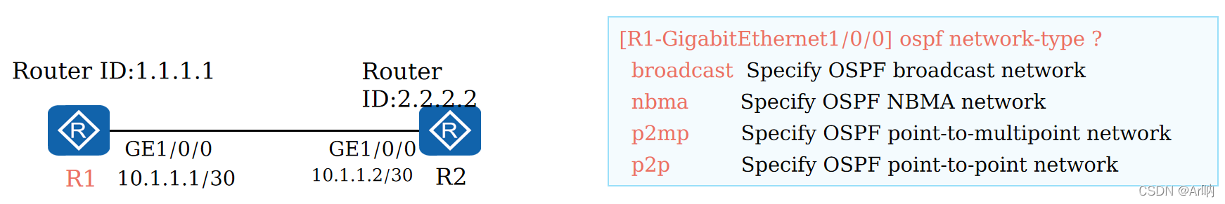 OSPF网络类型是影响OSPF在界面上活动的一个关键界面特征,例如OSPF协议信息是如何传输的,是否是DR、BDR等等。