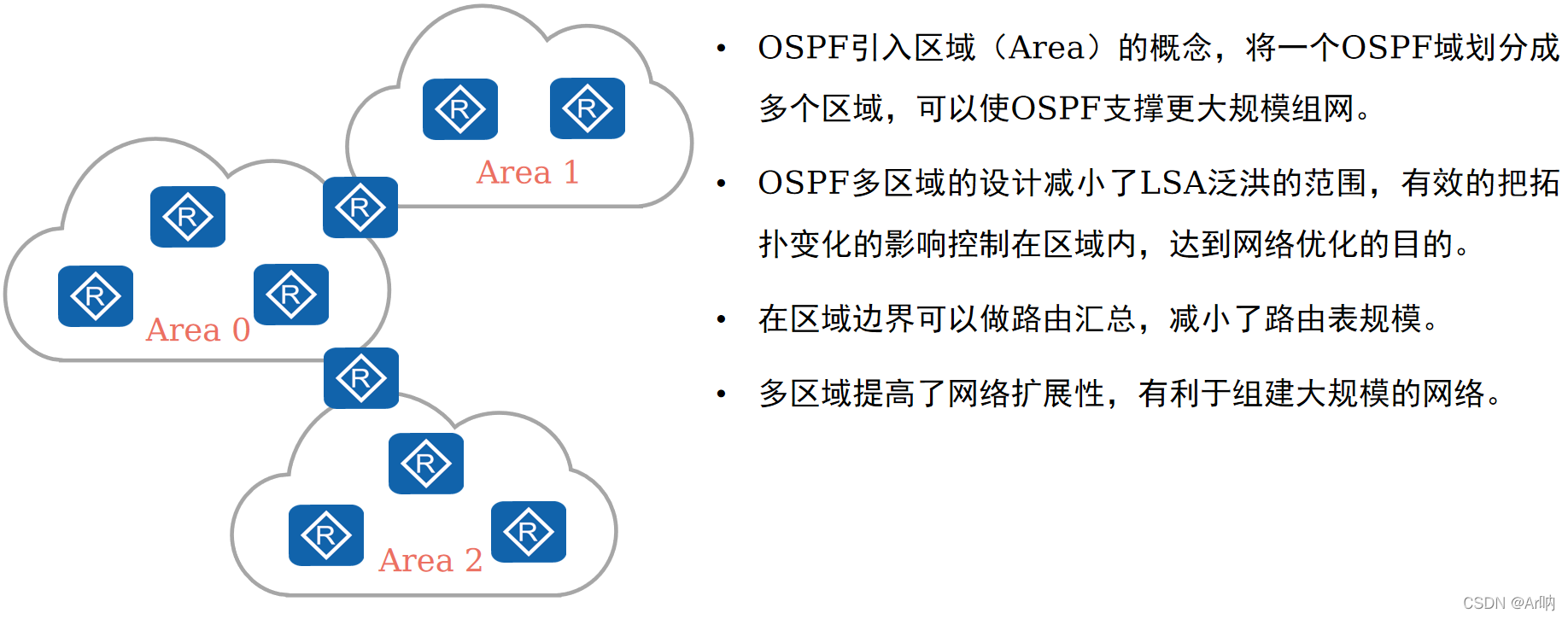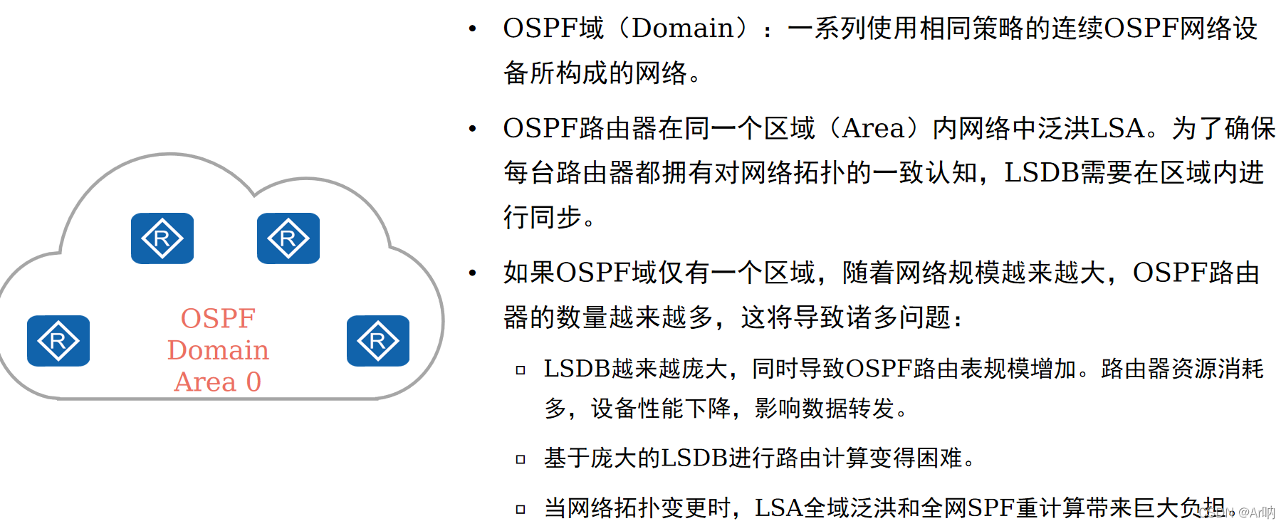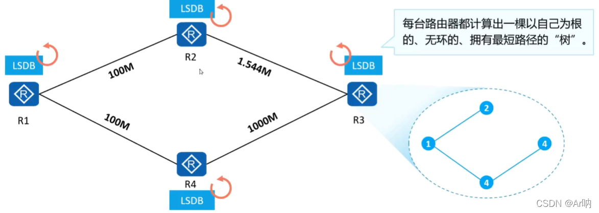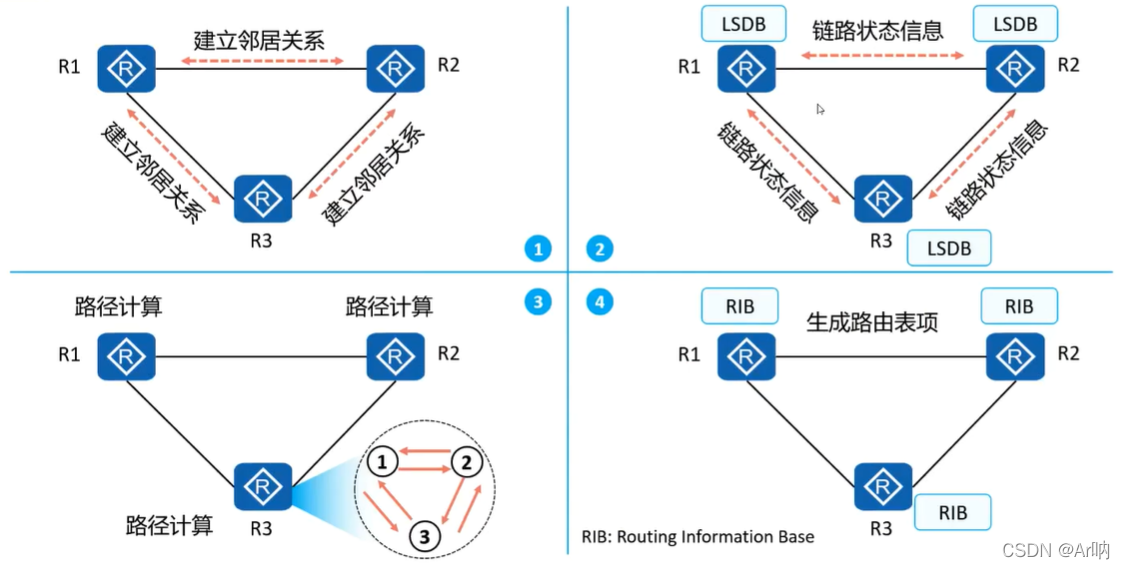 OSPF路由器从网络获取LS信息并将其储存在LSDB。 路由器对该区域的网络-模式结构具有全面形象,有助于计算无环路径。