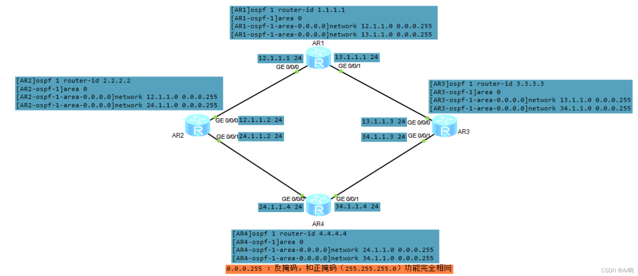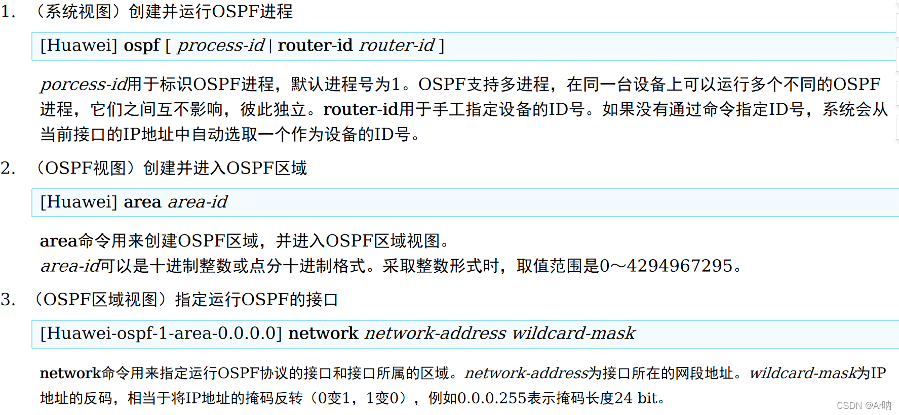 Router-ID(Router Identifier,路由器标识符),在OSF域中,路由器仅用于识别一个路由器。可以使用路由器ID配置。手工配置的方式,或使用系统自动配置的方式。