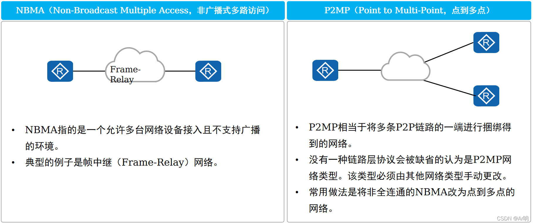 3. 如果接口是FR 自动取款机,则被归类为NBMA的非广播多程访问。