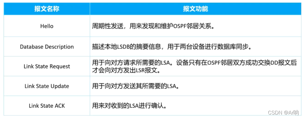 OSPF包括五类协定,其中每一类文件在OSPF路由器的相互作用中具有特殊目的。