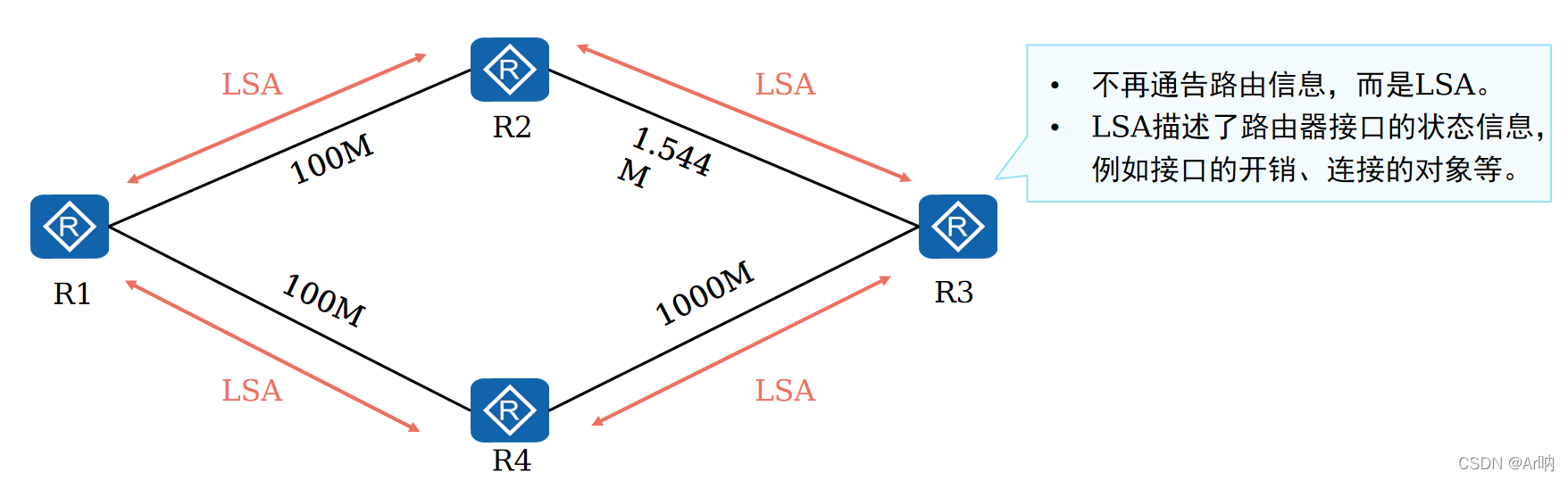 与远程矢量路由协议相反,连接状态通过协议作为连接状态而不是路线表传递。功能链接路由协议的路由者首先创建了商定的邻居连接,然后彼此互动。LSA(Link State Advertisement,链路状态通告)。