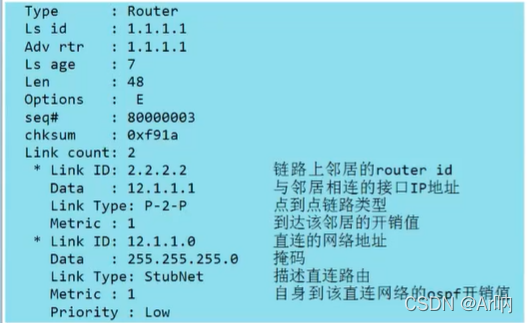 LSDB存储它生成和从邻居那里获得的LSA数据。 LSDB在R1中包含三种LSA。