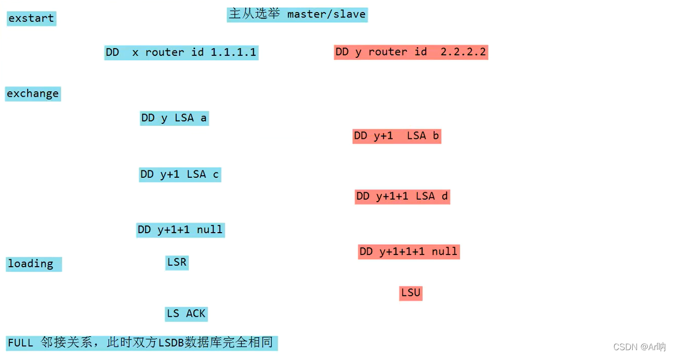 退出状态下, 不要携带任何LSA 信息。 主路由器是选举的巨大根代号 。