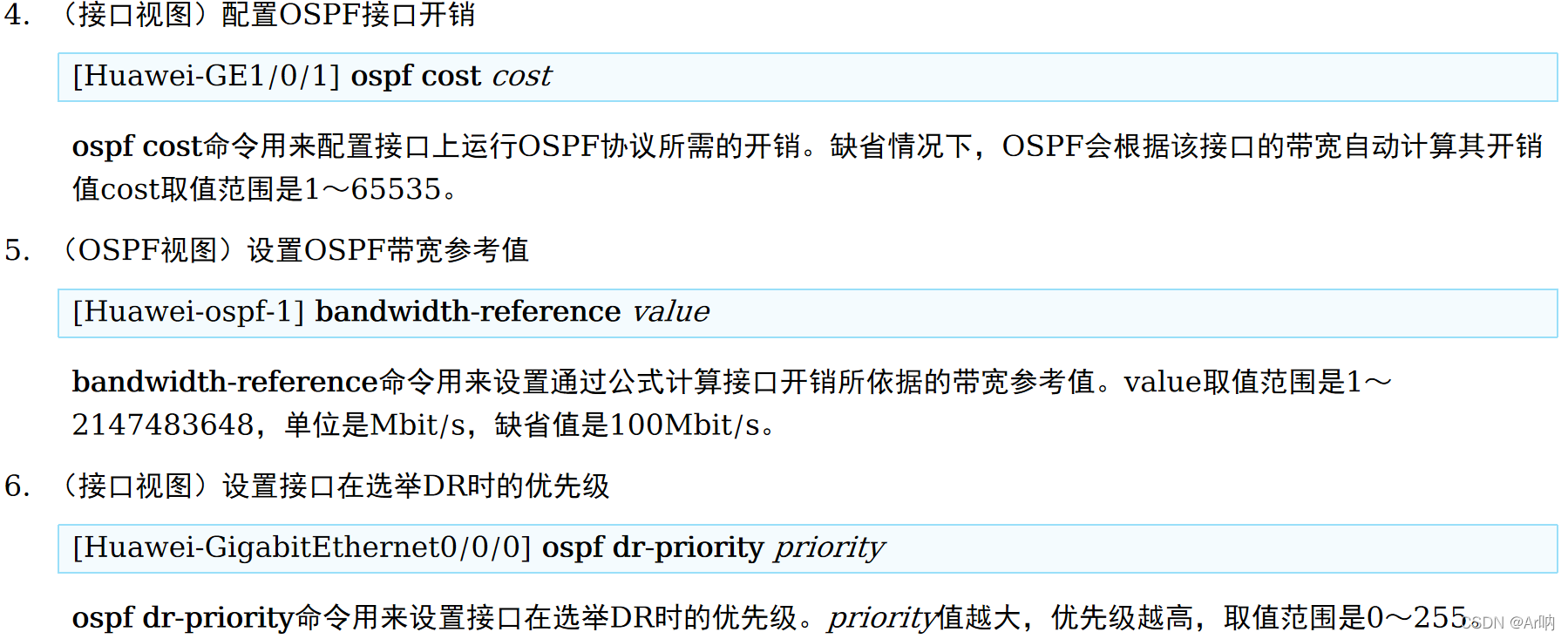 [Huawai-GigabitEthernet0/0/0/0]OSpf成本成本100 直接成本价值调整