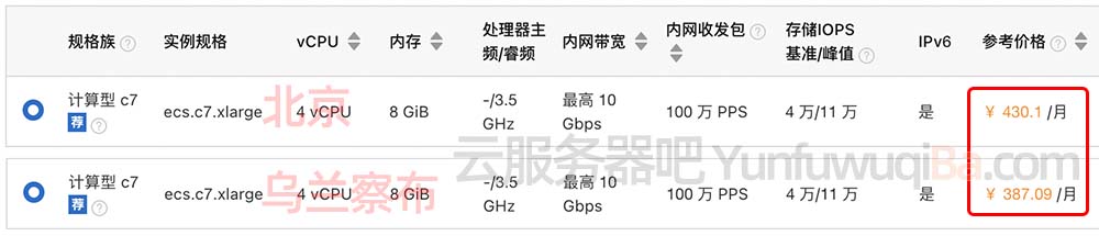 例如,云服务器考虑ECS计算型号c7、4核8G配置ecs.c7. 在北华2台(北京)的地理价格定为430美元。 A月,乌兰巴托领土面积为387.09美元,详情如下: