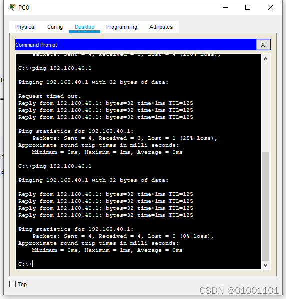 Router(config)#ip route 0.0.0.0 0.0.0.0 fastEthernet 0/0PC0 pings PC1作为测试。
