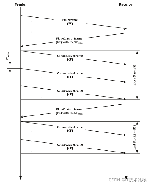 STmin(最低安全时间):发送者在发送两个CF N_PDUs之间等待最短时间。