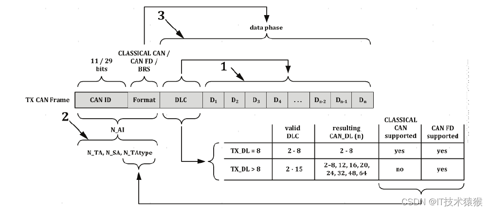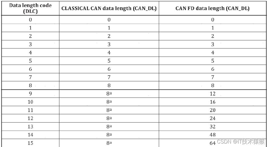 ISO 11898-1 定义一个可配置长度的罐头框架。最大有效载荷大小由礼宾设备确定。有效载荷大小介于0至8字节之间的框架可以通过标准CAN协议装置发送/接收。CAN FD (flexible data rate,具有可变数据率的礼宾装置可接收和发送 0-64 字节。Can FD协议装置也可以发送/接收CAN框架。