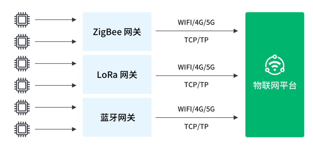 网关协议适用于无法直接遮盖的短距离通信,如蓝牙、齐格贝、洛拉等。 这些设备需要连接到网关转换器,并在TCP/IP协议上覆盖。